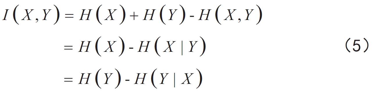 互信息是一種數學定義,用來評估隨機變量之間的關聯性。它表示兩個隨機變量中的共有信息。由信息熵描述的互信息表達式如下[12]: